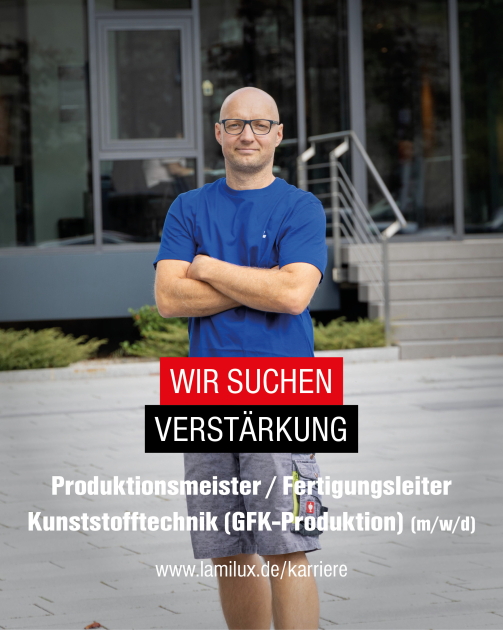 Jeden Tag meistern Sie neue Herausforderungen und lieben es, selbst­ständig zu arbeiten. Sie möchten echten Erfolg mit­ge­stal­ten. Haben Sie auch einen Arbeit­geber, der das zu schätzen weiß? Rund 1300 Mitarbeitende bei LAMILUX schon! Deswegen sind wir eines der wachs­tums­stärksten Familien­unter­nehmen Ober­frankens und welt­weit führend in unseren Märkten: Wir produ­zieren faser­ver­stärkte Kunst­stoffe für den welt­weiten Bau von Nutz­fahr­zeugen, Caravans oder auch Bussen. Zudem sind wir europa­weit bekannt als Spezialist für Licht­kuppeln, Glas­dächer und Flach­dach­fenster. Und: Wir brauchen Sie!